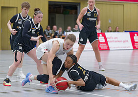 Auch nach dem Seitenwechsel präsentierte sich unser Team stabil und kämpferisch. Besonders Cianna Gloster dominierte mit einem beeindruckenden Double-Double aus 10 Punkten und 15 Rebounds das Brett und sicherte uns wichtige zweite Chancen. Dank guter Defensivarbeit erzwangen wir Stopps und punkteten in kurzen Läufen durch Heck, Schwarz und Walker. Das dritte Viertel gewannen wir knapp mit 20:19 und hielten das Spiel weiterhin offen.